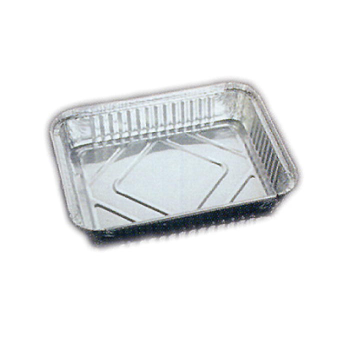 Contenitori in alluminio rettangolari con bordo a L richiudibile. dim.ni sup. interne 210x160 altezza 35 mm. 4 porzioni ca. Può contenere 1.100 cc. Produzione Cuki Europak. Prezzo per confezione da 100 pz. Imballo da 7 conf.