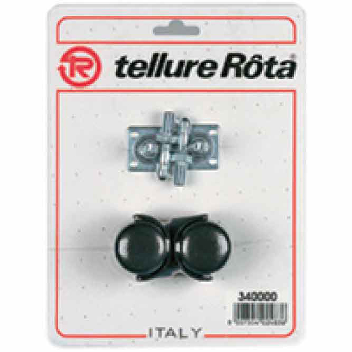 Ruote nere in gomma standard; durezza 85 +/- 3 Shore A. Piastra girevole, mozzo con cuscinetto a rulli e freno anteriore Ruota 80x25 - Piastra girevole 100x85 altezza da terra 107 mm. - Portata 65...