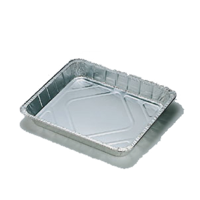 Contenitori in alluminio rettangolari con bordo a L richiudibile. dim.ni sup. interne 203x98 altezza 54 mm. Può contenere 900 cc. Prezzo per confezione da 20 pz Imballo in cartone da 20 confezioni.