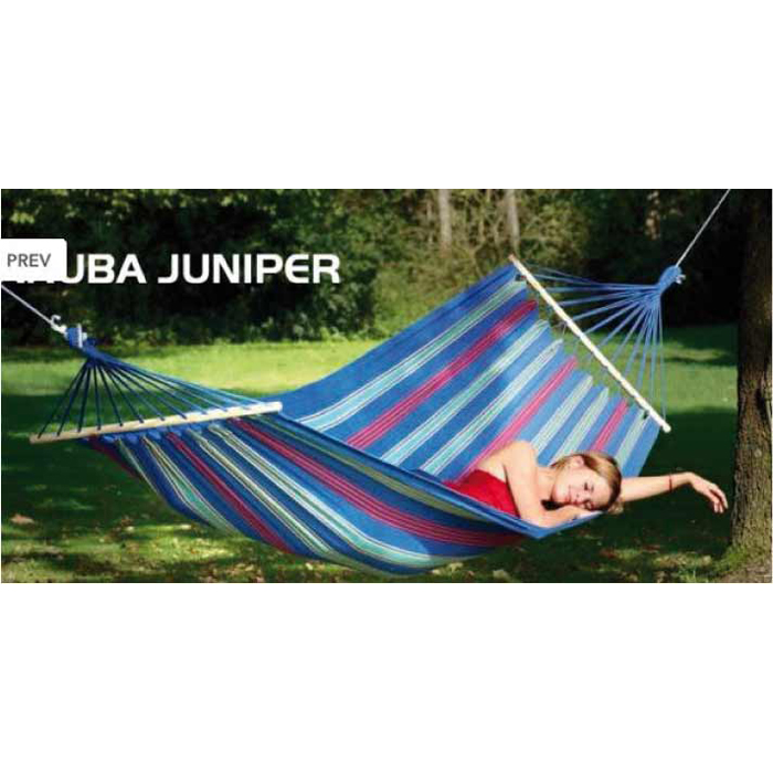 Amaca comoda e sicura, ideale per sognare o rilassarsi.Realizzata nello speciale materiale innovativo EllTex: Extra Long Lasting Textile (cotone e poliestere) Dimensioni: 210 x 120 cm Lunghezza totale: 310 cm Aste di frassino da cm 80 Portata kg 180 ca.
