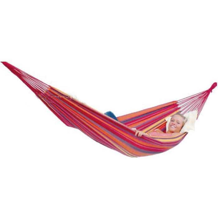 Amaca comoda e sicura, ideale per sognare o rilassarsi.Realizzata nello speciale materiale innovativo EllTex: Extra Long Lasting Textile (cotone e poliestere) Dimensioni: 200 x 100 cm Lunghezza totale: 310 cm Portata kg 120 ca.