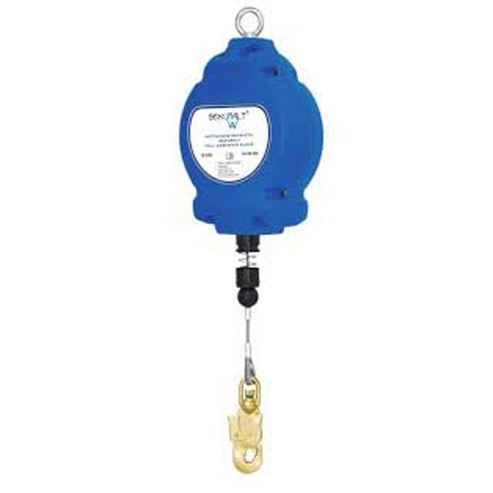 Dispositivo anticaduta retrattile con sistema di recupero automatico con cinghia in poliestere, larghezza 50mm, lunghezza 2,5 metri, con anello girevole dotato di indicatore di caduta nella parte superiore + 1 moschettone in acciaio, chiusura filettata...