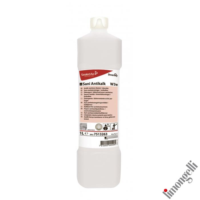 Detergente disincrostante della Diversey pronto all'uso, ideale per la rimozione veloce di residui calcarei nell'ambiente bagno. Formula a base di acido sulfaminico. Azione rapida ed efficace, con effetto pulito, brillante, disinfettante. Imballo da 6 conf da lt 1.