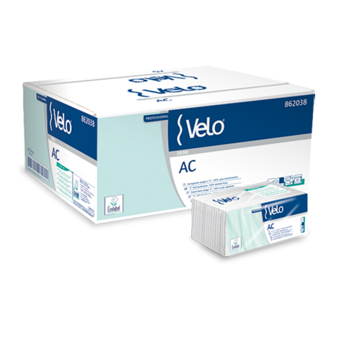 Asciugamani di carta 1 velo piegati a "C" ECOLABEL Imballo da 20 confezioni da 192 asciugani formato 33 x 23 cm. (3.840 pz) Peso totale collo 12,2 kg.