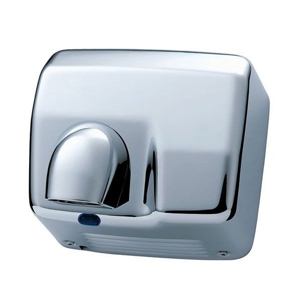 Asciugamani elettrici ad azionamento automatico OPTIMA coperchio in acciaio mm 1,9 finitura con vernice epossidica bianca. Motore universale ad induzione dotato di limitatore termico, senza manutenzione. Dimensioni mm 255x302x140 - Peso kg 4,45 - 1640...