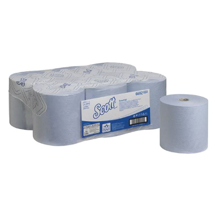 Asciugamani certificati per il contatto alimentare. Con SCOTT® Essential, il rotolo compatto presenta il marchio SCOTT® goffrato. L'esclusiva tecnologia Airflex* rende il materiale ultra-assorbente, soprattutto rispetto agli asciugamani di carta tradizionali. Il tessuto Airflex* si mantiene resistente anche da bagnato, senza strapparsi o afflosciarsi, e conserva una consistenza morbida e confortevole. Questo prodotto è venduto in 6 confezioni x 350 m = 8.400 asciugamani a rotolo a 1 velo, colore azzurro (totale 2.100 m). Misura dei fogli: 19,8 cm (larghezza). Compatibili con i dispenser di asciugamani a rotolo AQUARIUS* (codici prodotto 7375 e 7376).