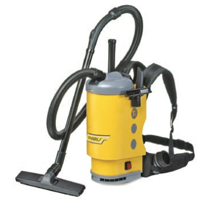 Aspirapolvere dorsale, compatto, leggero, maneggevole e di elevata potenza. Si indossa come uno zainetto. Lascia le mani libere, non intralcia i movimenti e permette un lavoro veloce, efficace, meno pesante! Peso 4,8 kg. Doppia filtrazione (filtro a cartuccia + sacco filtro). Filtrazione aria di scarico. Sedi per accessori. Protezione termica sul motore.