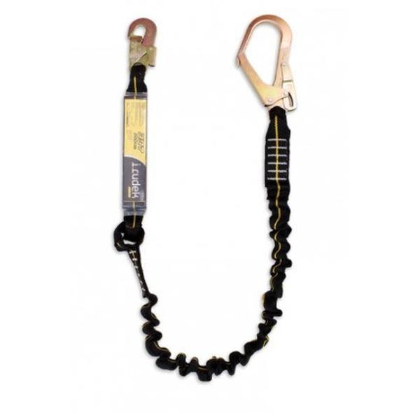 Assorbitore di cintura elastica + 1 moschettone in acciaio automatico integrato nell?assorbitore + 1 moschettone in acciaio apertura 55mm.