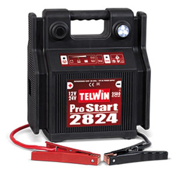 Avviatore portatile a batteria, adatto all'avviamento a 12-24 V di auto, furgoni, camion, imbarcazioni, mezzi agricoli, generatori, etc. Collegato alla presa accendisigari del mezzo, mantiene sotto tensione tutti i circuiti nei cambi batteria; ? altres? una fonte di energia a 12 V in casi di emergenza. Fornito di un interruttore di sicurezza per l'avviamento, non danneggia l'elettronica del veicolo e consente di effettuare numerose operazioni di avviamento prima della conseguente ricarica. E' possibile ricaricare PROSTART 2824 attraverso l'apposito alimentatore, collegato alla tensione di rete, oppure attraverso la presa accendisigari del mezzo (per salvaguardare l'integrit? della batteria, caricare per 12 ore prima dell'uso, dopo ogni uso e comunque ogni 3 mesi). Caratteristiche: interruttore di sicurezza * allarme acustico/luminoso protezione inversione polarit? * lampada a led ad alta efficienza * led stato di carica della batteria * led di controllo batteria in ricarica * 2 prese jack a 12V * Tasca porta-cavo. Completo di: Alimentatore 230V AC 12V DC, cavi positivo-negativo con pinze, lampada ad alta efficienza, cavo a doppio jack.