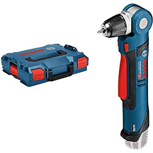 Trapano ad angolo a batteria L’utensile è concepito per la foratura nel legno con diametro fino a 10 mm e per inserire viti con diametro fino a 6 mm. Compatibile con tutte le batterie e tutti i caricabatteria Bosch Professional da 12 V (Professional 12V System).