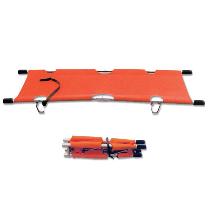 Barella richiudibile con struttura in alluminio. Leggera e solida. Piedi in alluminio protetti da gomma antiscivolo. Telo in resistente nylon arancio rivestito in vinile impermeabile. La barella pu? essere ripiegata in 4 parti per facilitare lo stivaggio. Conforme CE 93/42. Inclusa di borsa porta barella.