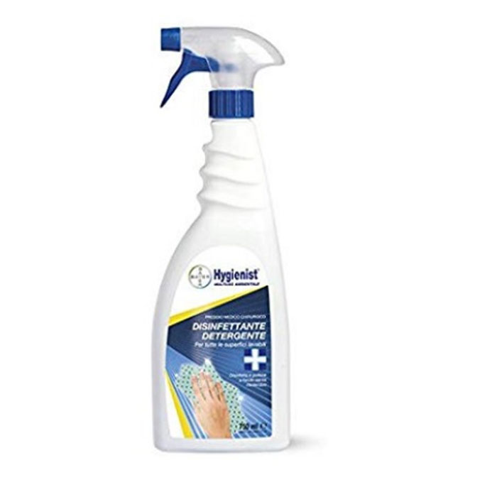 Formula della BAYER sviluppata per la disinfezione e la pulizia di tutte le superfici lavabili. Forte azione sgrassante. Adatto per disinfettare e pulire piani di lavoro, lavelli in acciaio, attrezzature in genere ed in ambiente alimentare (affettatrici, bilance, ecc.). Lascia le superfici brillanti senza lasciare alone. Non necessita di risciacquo. Prodotto registrato Reg. Ministero Sanita n. 14157. Confezione : 12 pz con spray trigger. Prezzo per 1 pz