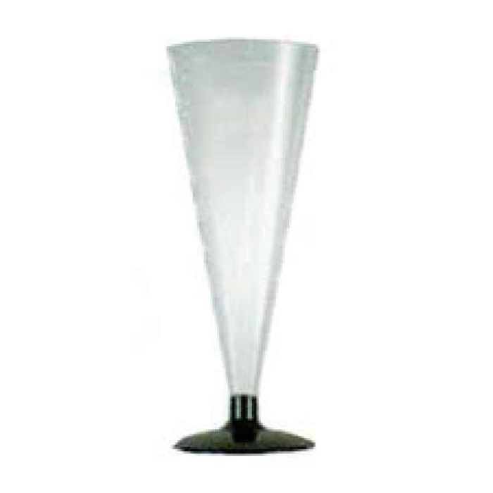 Flute monouso colore cristallo da 170 ml. Base colore nero. Imballo in cartone da 288 pz.