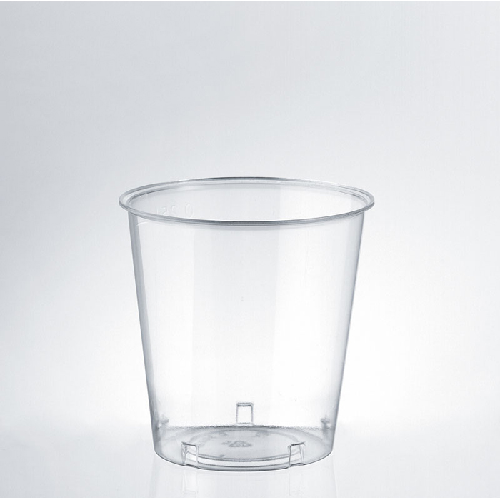 Bicchiere Kristall polipropilene trasparente infrangibile da 250 cc. Tacca a 200 cc. Imballo da 1.000 bicchieri (20 conf da 50 pz). prezzo (1 ct da 20 cf)