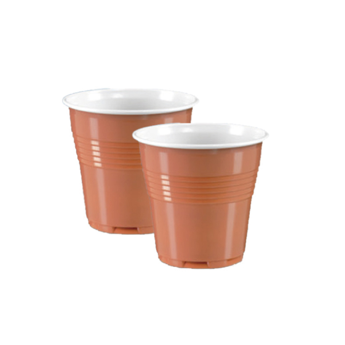 Bicchieri PS monouso da 80 ml. Ideale per caffè, colore esterno marrone e interno bianco. Peso imballo kg 7,2 x € 0,369 CONAI = € 2,657 per cartone (incluso nel prezzo di vendita). Prezzo per imballo da 48 conf da 100 pz.