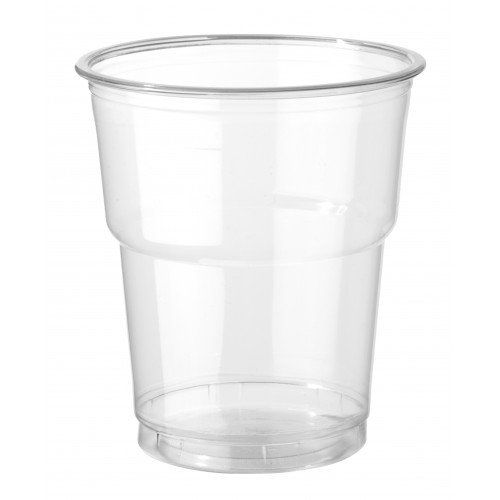 Bicchieri trasparenti in R-PET cioè PET riciclato (polietilene tereftalato), proveniente dall'industria alimentare (bottiglie di acqua e bibite). L Questa materia riciclata favorisce la riduzione dei gas serra e contribuisce al risparmio energetico. Conforme ai requisiti previsti dal marchio ',PSV Food' che si applica ai materiali e agli oggetti realizzati in materie plastiche di riciclo destinate al contatto con alimenti, in conformità alla normativa nazionale ed europea.