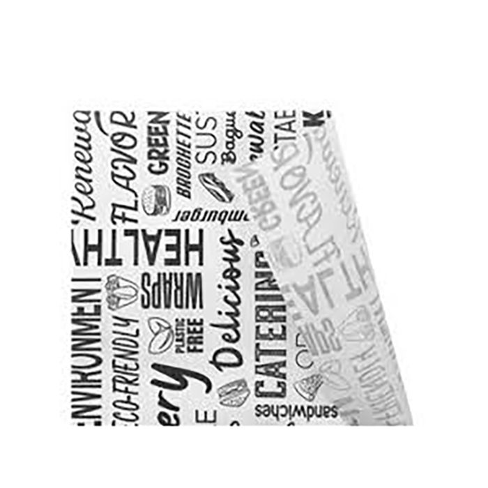 Carta antigrasso rettangolare stampata cm. 20x33. Peso 2,5gr.