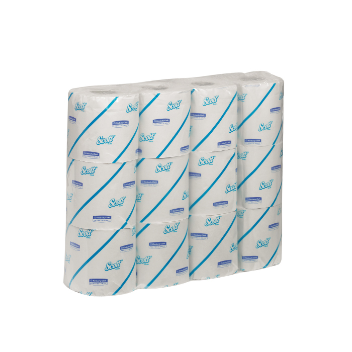 Carta igienica produzione Kimberly Clark con fascetta igienica SCOTT - 2 Veli 210 strappiI cm 12,5 x 9,5 pari a mt 26,25 - Peso totale imballo kg 10. Prezzo per imballo da 12 confezioni da 8 rotoli (96 rotoli). Dimensioni collo: cm 84 x 42 x 28.5