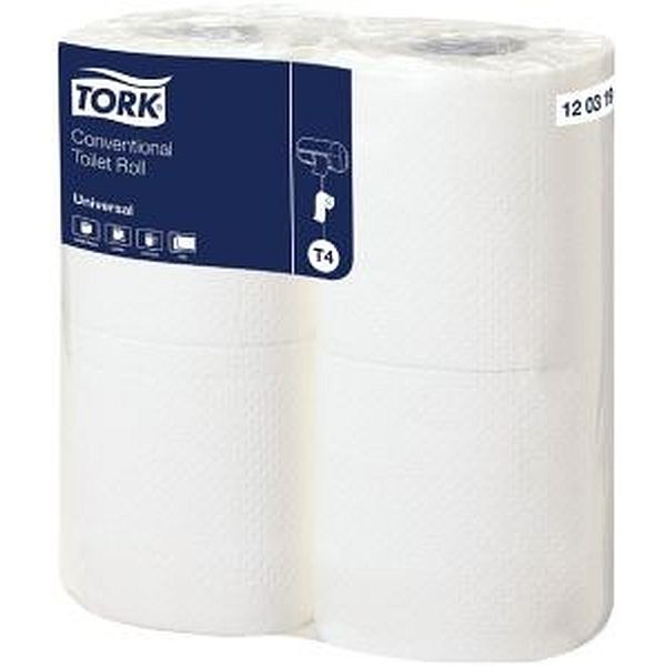 Carta igienica pura cellulosa 2 veli. Prezzo per imballo da 7 confezioni da 4 maxi rotoli da 500 strappi pari a mt 58 cad/ca. Totale 28 maxi rotoli. Peso imballo kg 4,8 ca. 1 pallet pari a 14 imballi. Prezzo per imballo (28 rotoli). Produzione Essity SCA TORK.