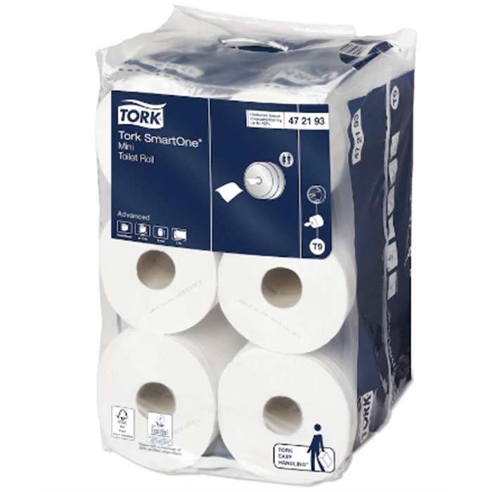 Il dispenser di carta igienica Tork SmartOne® Mini eroga in modo esclusivo un solo strappo di carta igienica per volta, I rotoli Tork SmartOne® Mini sono indicati per aree bagno esigenti, a prescindere dalla quantità di visitatori, compatibilmente con il tipo di dispenser Tork SmartOne® Mini prescelto. Lunghezza 111.6 m - Larghezza rotolo 13.4 cm - Diametro rotolo 14.9 cm - Numero strappi 620 - Lunghezza strappo 18 cm - Diametro interno anima 4.4 cm - Numero veli 2. Sono indicati per aree bagno esigenti, a prescindere dalla quantità di visitatori, compatibilmente con il tipo di dispenser Tork SmartOne Mini prescelto.