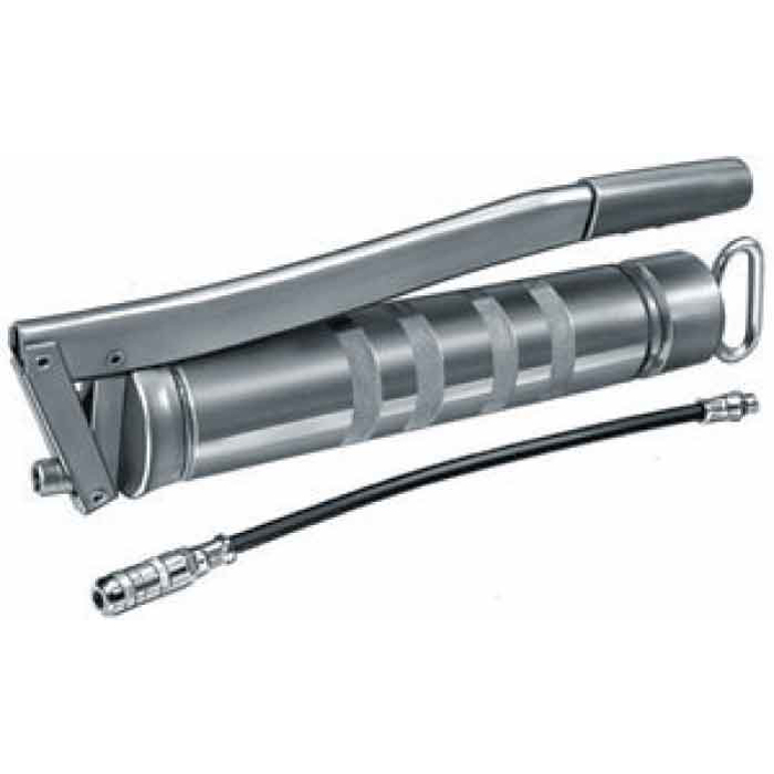 Compressori a leva per grassaggio in set Art. 3423L Sicutool - Prod. SCU Assortimento composto da: 1 compressore Art. 3423 Hx500 - 1 raccordo flessibile Art. 3425 Lx300 - 1 testina a 4 griffe 3425A. Cartuccia grasso cod.