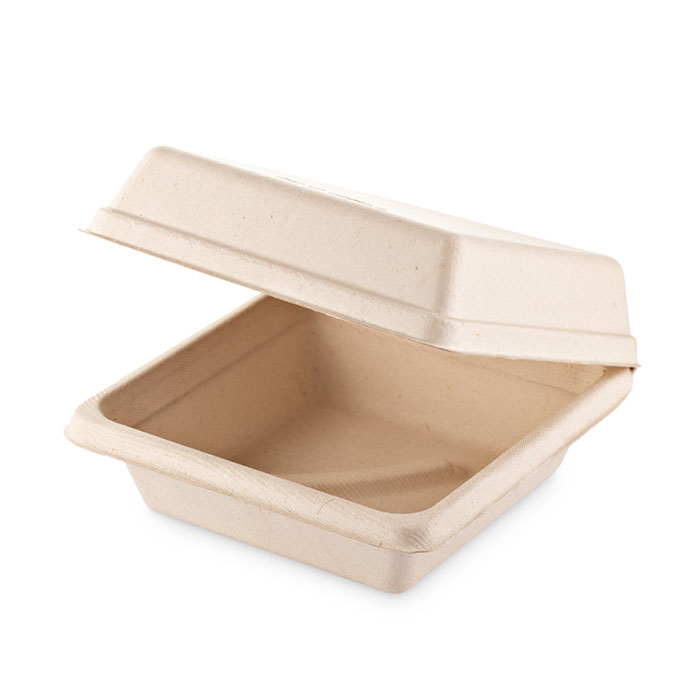 Contenitore in polpa per hamburger dimensioni cm 16x16 h 4/5. Imballo in 6 confezioni da 50 pezzi. Totale 300 pezzi.