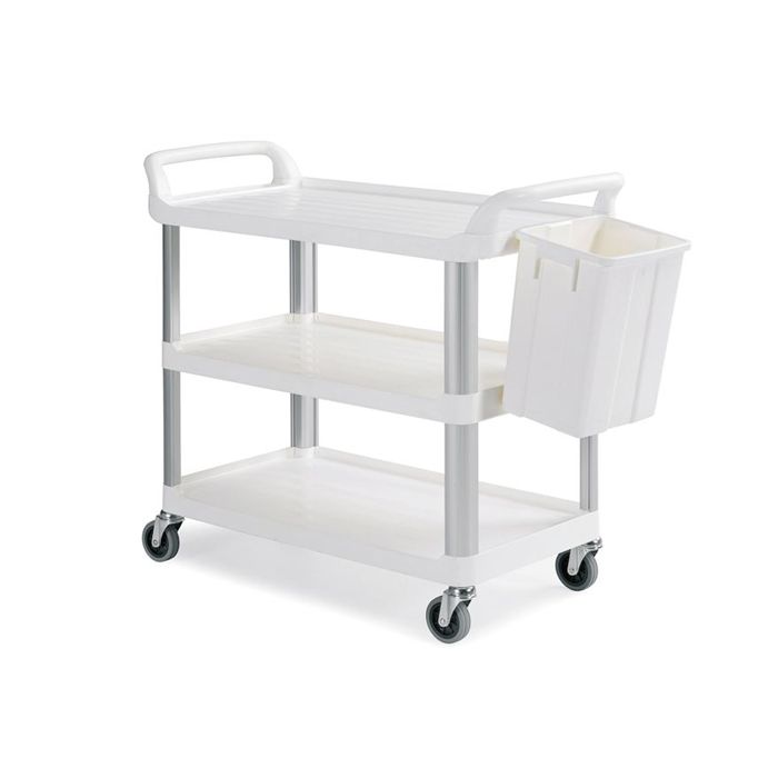 carrello multiuso "morgan" composto da base grande c/ruote ø 100 mm con paracolpi, 2 montanti in rilsan, 2 cassette centrali, 4 secchi da lt. 6, set pittogrammi adesivi, portasacco 120 lt., piatto reggisacco, portastrizatore in...