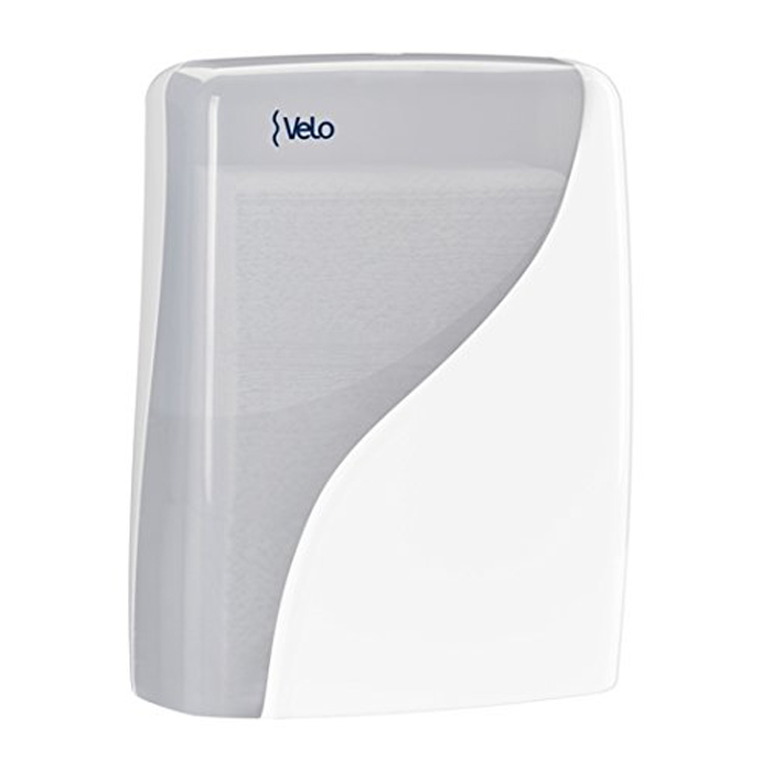 Dispenser per asciugamani piegati a C , V, Z. M. . Capacità 3,5 confezioni di asciugamani piegati. Compatibile con la gamma completa di asciugamani piegati. Dimensioni L x P x H 304,6 x 133 x 387,5 mm.