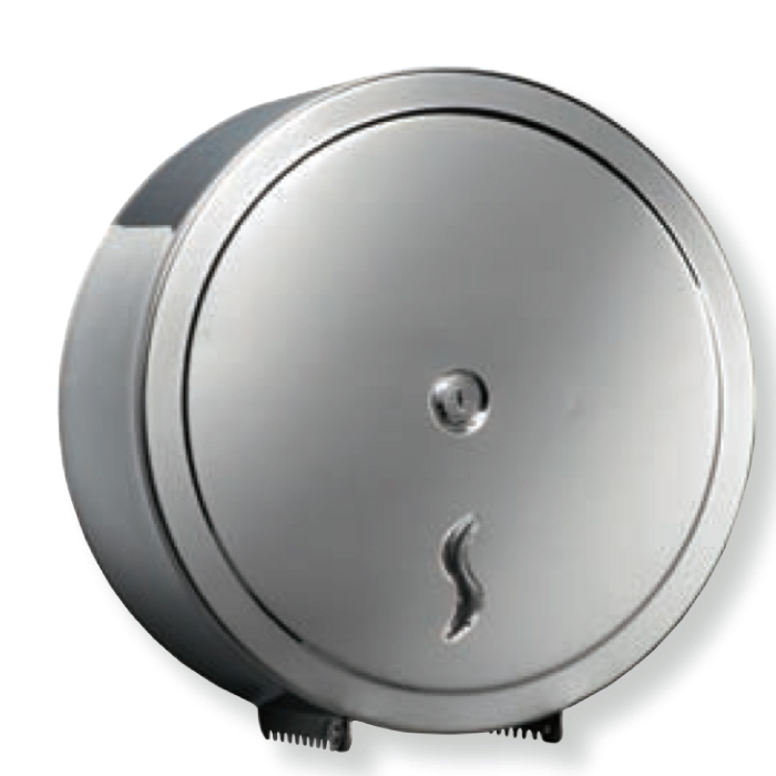 Acciaio Inox brillante o satinato, AISI 430 (17/10) o 304 (18/10), Ø Mandrino: 45 mm, Ø Rotolo: 230 mm max , Sobrio e robusto, Distribuzione della carta limitata dalla forma del mandrino. Viteria Inox inclusa. Dimensioni: A 265mm - L 260mm - P 127mm