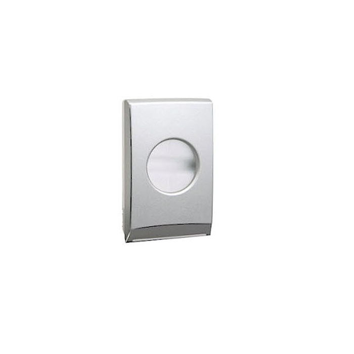 Distributore di sacchetti igienici per bagni in plastica ABS. Versioni disponibili : Bianco -Cromato - Satinato - Dorato. Possibilità di personalizzazione con stampa logo fino a 3 colori su richiesta. Dimensioni mm 97 x 137...