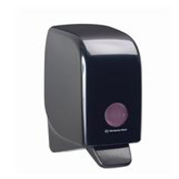 Aquarius Kimberliy Clark elegante dispenser detergente per le mani per tutte le tipologie di sapone in gel o in schiuma confezionati in cartucce da 1 litro di Kimberly Clark Professional.. Codici sapone 6333 e 6340 a schiuma. Dimensioni 23,5 x 11,4 x 16,6 cm.. Disponibule nei colori nero e bianco.