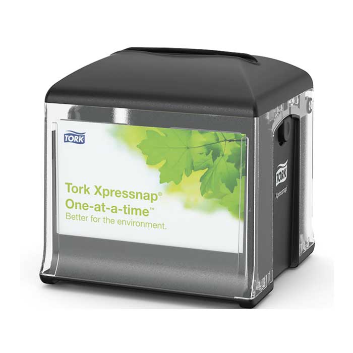 I dispenser di tovaglioli Tork Xpressnap Snack® sono ideali per i ristoranti a servizio limitato, che preferiscono i tovaglioli di piccolo formato. Questo compatto dispenser eroga i tovaglioli singolarmente, migliorando l’igiene e riducendo i consumi di almeno il 25% rispetto ai dispenser di tovaglioli tradizionali.