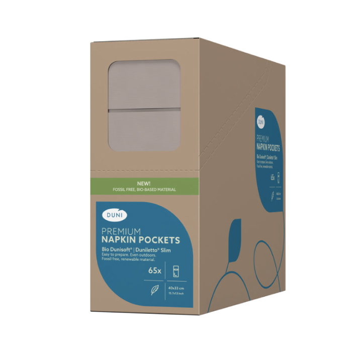 Duniletto slim bio Dunisoft, 40 x 33 cm.Tovaglioli portaposate pratici e igienici. Una soluzione facile e veloce per toccare il meno possibile posate e tovaglioli. Preparati in anticipo ad apparecchiare in poco tempo durante le ore di maggiore afflusso. Sono un'ottima soluzione sia per l'interno che per l'esterno. Riproduce fedelmente l'aspetto e la sensazione tattile del tessuto. Lussuosamente goffrati, morbidi e spessi. Compostabili. Tovagliolo già piegato con tasca per le posate. Riproduce fedelmente l'aspetto e la sensazione tattile del tessuto. Goffrato, morbido e spesso. Compostabile. PREZZO PER CT DA 260 pz