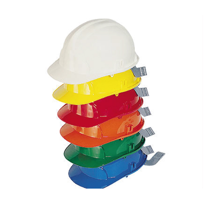 Elmetto in polietilene da cantiere. Bardatura in plastica regolabile. Fascia antisudore. Isolamento elettrico fino a 440 V. Marcatura "CE" "EN397" Colori bianco, giallo, blu, rosso, verde, arancio.
