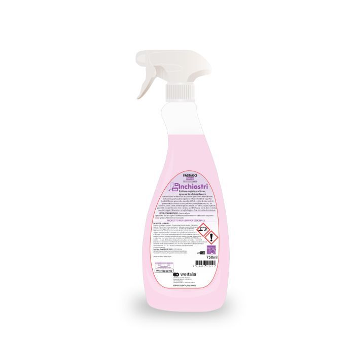 Pulitore rapido multiuso ad alto potere sgrassante, detersolvente, polivalente, per la pulizia rapida ed efficace di tutte le superfici lavabili. Elimina grasso olio, macchie difficili, residui di cibo, tratti di pennarello, inchiostri, rossetti, nicotina, smog, impronte, ecc. da scrivanie, sedie, tavoli, laminati plastici, mobili per ufficio, cappe aspiranti, piastrelle e superfici dure. Non contiene alcoli forti, non lascia aloni e residui, non danneggia l’alluminio e le leghe leggere. Non necessita di risciacquo. Pronto all’uso. Spruzzare, lasciare agire e distribuire uniformemente utilizzando un panno o una spugna. PREZZO 1 flacone - IMBALLO 12 flaconi.