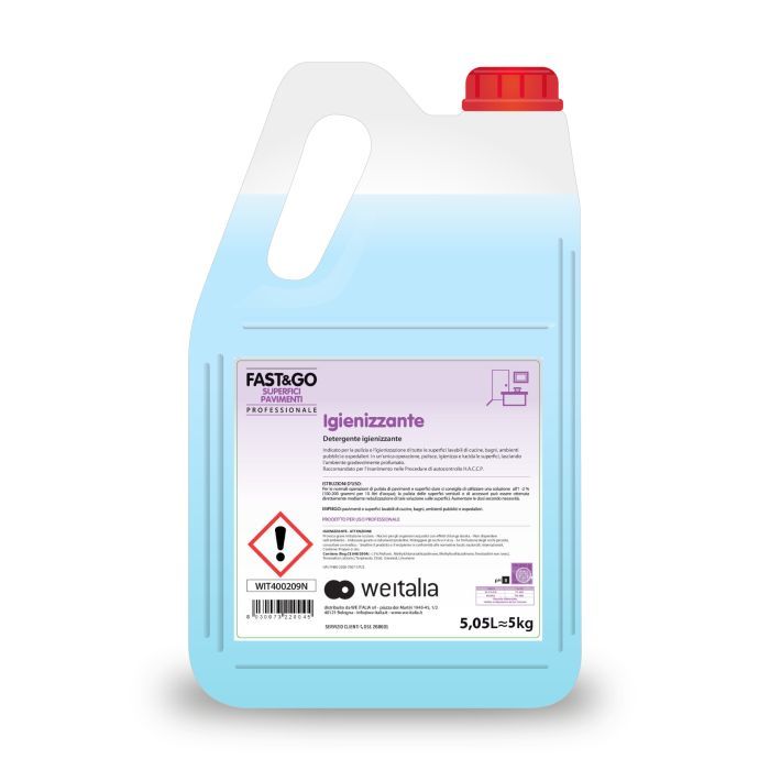 Indicato per la pulizia e l’igienizzazione di tutte le superfici lavabili di cucine, bagni, ambienti pubblici e ospedalieri. In un’unica operazione, pulisce, igienizza e lucida le superfici, lasciando l’ambiente gradevolmente profumato. Raccomandato per l’inserimento nelle Procedure di autocontrollo H.A.C.C.P. Per le normali operazioni di pulizia di pavimenti e superfici dure si consiglia di utilizzare una soluzione all’1-2% (100-200 grammi per 10 litri d’acqua); la pulizia delle superfici verticali o di accessori può essere ottenuta direttamente mediante nebulizzazione di tale soluzione sulle superfici. PREZZO 1 tanica - IMBALLO 4 taniche.
