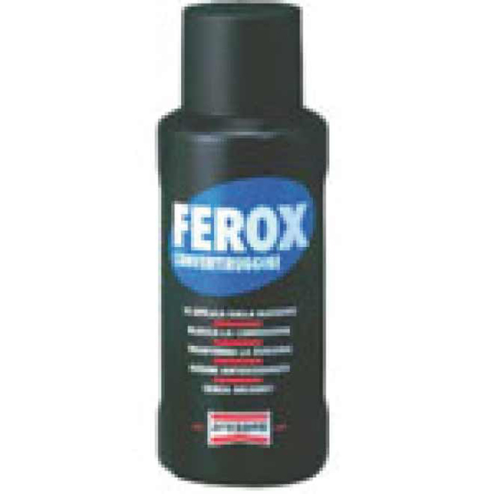Ferox ? a base di resine sintetiche disperse in acqua e non contiene solventi: applicabile anche in ambienti chiusi o poco ventilati. Reagisce chimicamente con la ruggine, trasformandola in un complesso stabile, di colore nero, che una volta sovraverniciato resiste all'attacco degli agenti atmosferici ed ? impermeabile all'umidit?. Efficace anche su zone verniciate o su manufatti non arrugginiti, dove forma uno strato trasparente.