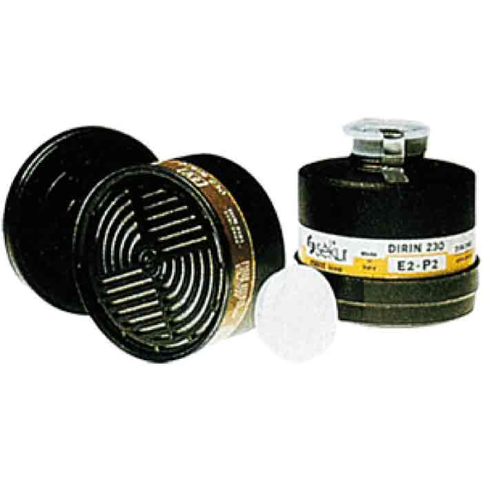 La serie DIRIN 230 comprende filtri con involucro in plastica di elevata resistenza agli urti e alla abrasione; eliminabili dopo l'uso per incenerimento FILTRI COMBINATI Conformi alla Norma EN 14387. DIRIN 230 A2-B2-E2-K2-P3 R BIOSTOP, polivalente combinato da montare su maschera pieno facciale o semimaschera Polimask 330.