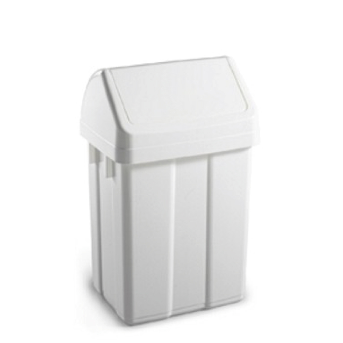 PATTY contenitore gettacarta in plastica da lt.50 con coperchio basculante BIANCO. Indicato per la raccolta dei rifiuti in ambienti quali: alberghi, scuole, ospedali, ristorazione, mense e comunità in genere. Dimensioni 36x29x65 cm.