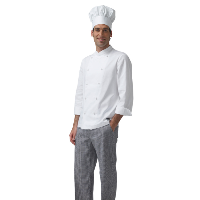 Giacca cuoco colore bianco 100% cotone drill sanfor 190 gr/mq. Produzione SIGGI.