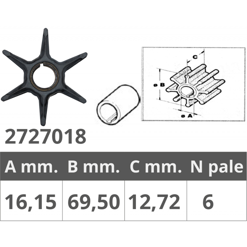 dim. Ø int.mm.16,15 Ø est.mm.69,5 spessore mm.12,8, nr.6 pale