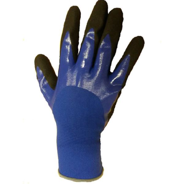 Guanti professionale a 5 dita per la protezione di rischi meccanici realizzati in maglina rovesciata di filo continuo molto sottile (15 gauge) di nylon di colore blu royal con polsino elastico, con DOPPIA SPALMATURA