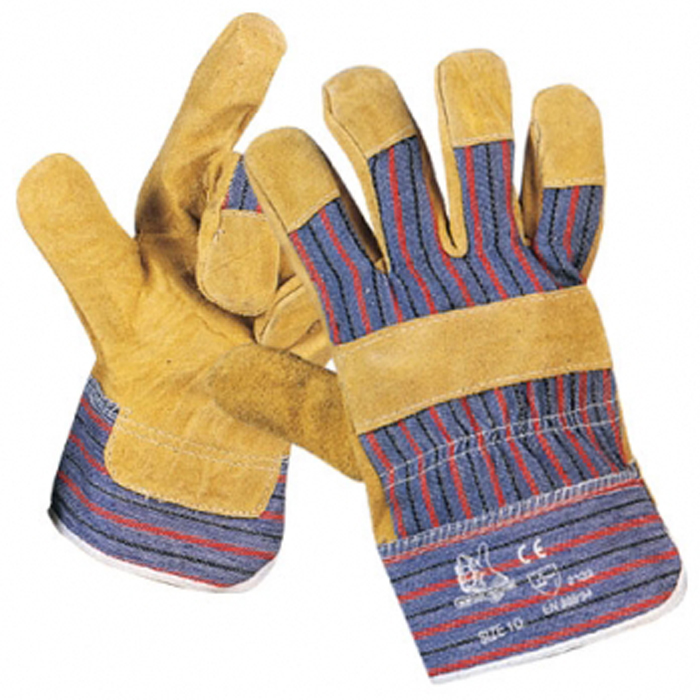 Guanto in crosta bovina/tela. Dorso e manichetta di sicurezza in tela di cotone, ottimo rapporto qualit?/prezzo.
