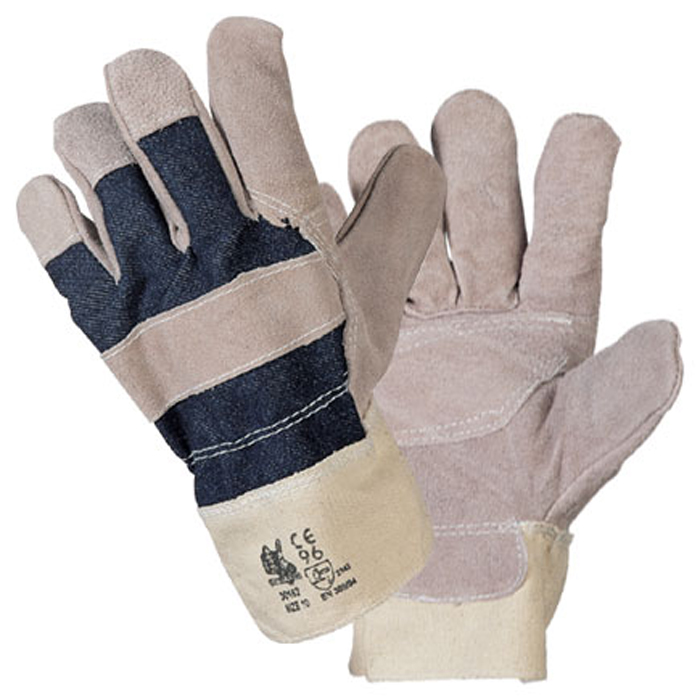 Guanto in crosta bovina/tela. Dorso e manichetta di sicurezza in tela di cotone, ottimo rapporto qualit?/prezzo.
