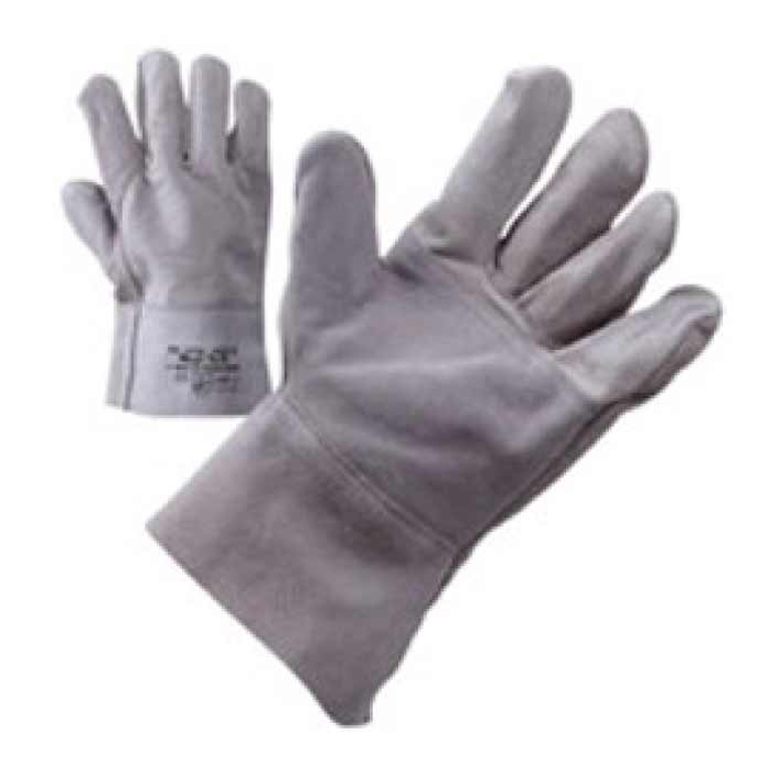 Guanto in crosta semplice con palmo e dita a doppio strato, manichetta di sicurezza da 15 cm, resistente al taglio all'abrasione e allo strappo. Applicazioni: lavori in fonderie, manipolazioni di prodotti metallurgici, taglio e tecniche...