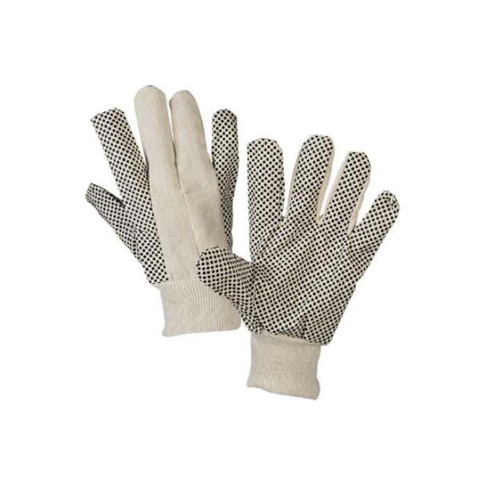Guanti in tela Polka puntinati in PVC con polsino in maglia elasticizzata. Applicazioni : bricolage, giardinaggio, manipolazione di casse in legno, cartone, manutenzioni generiche.