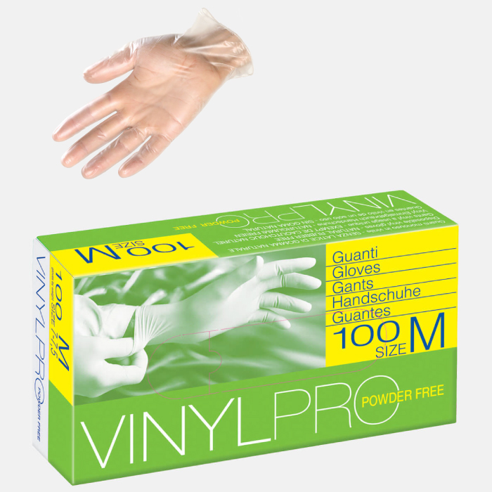 Guanto sintetico monouso in polivinilcloruro, ambidestro con bordino, a finitura interna opaca ed esterna liscia, senza polvere lubrificante all’interno. Guanto monouso di disegno semplice da utilizzare per le attività rientranti nella classe I di rischio - Rischi minori (Direttiva 89/686/CEE).