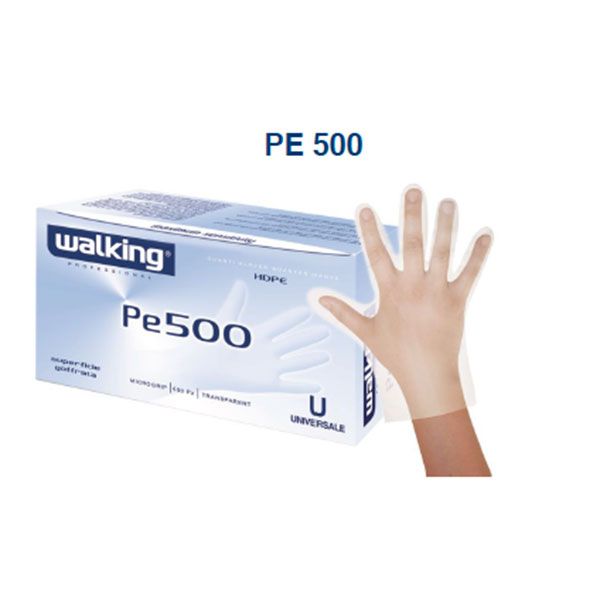 Guanti monouso, HDPE, senza polvere, micro goffrati, trasparente, ambidestri.