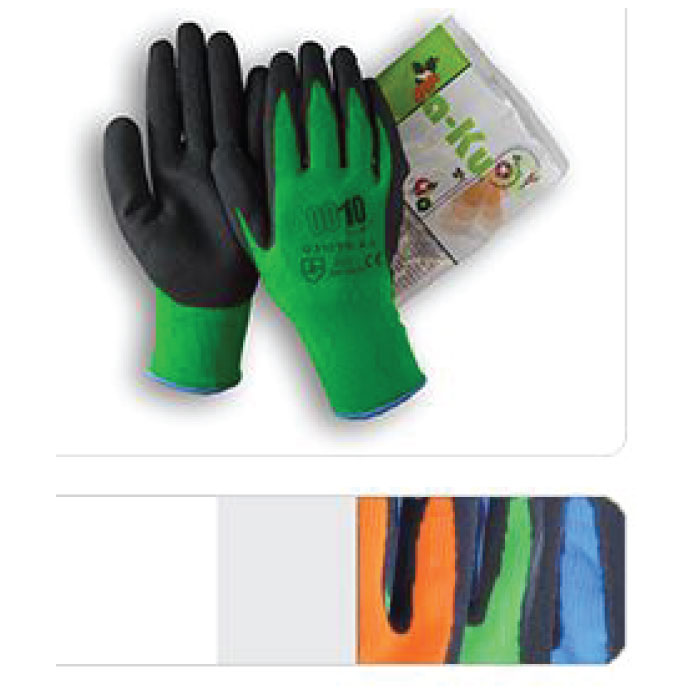 Guanto in filo continuo cotone/poliestere traspirante e flessibile palmo ricoperto in lattice Foam per lavori pesanti, dorso areato, polsino maglia. con superfice porosa che rende il guanto altamente prensile. EN 388 Classe 2121.