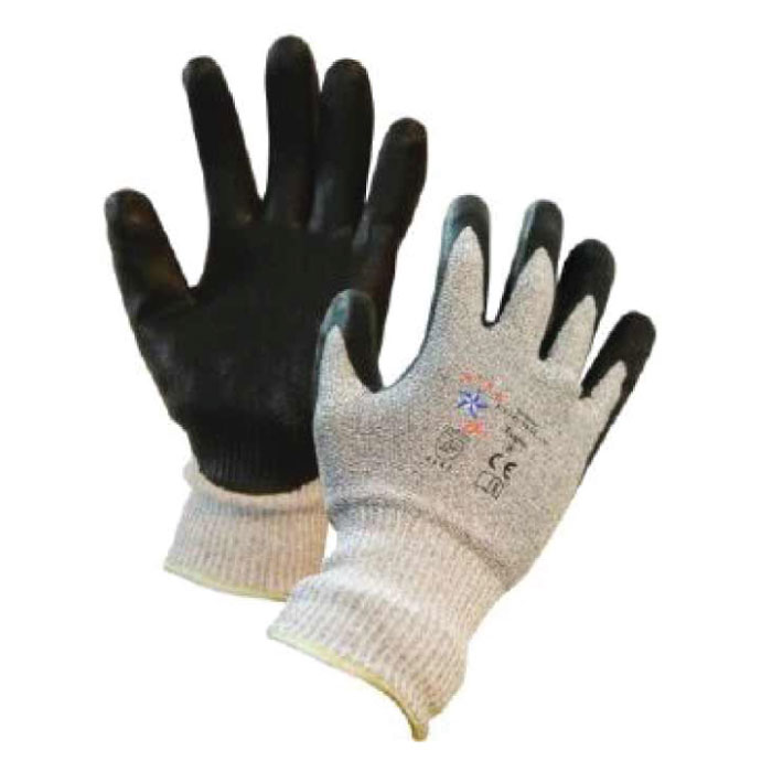 Guanti antitaglio in HPPE e LYCRA con palmo rivestito in poliuretano e polso in maglia elasticizzato. Ottima protezione dal taglio (liv. 5) Ottima resistenza all'abrasione ed allo strappo (liv. 4) Buon grip anche nella manipolazione di particolari scivolosi. Marcatura secondo EN 420, EN 388 4543 applicata su ogni guanto.